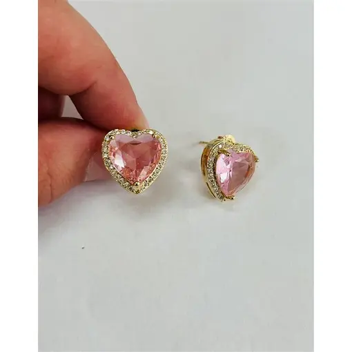 BR PEDRA CORAÇÃO ROSA C/ CONTORNO CRAVEJADO FOLHEADO A OURO 18K