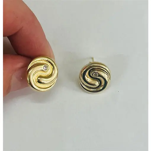 BR ORGANICO ESPIRAL LISO E CRAVEJADO FOLHEADO A OURO 18K