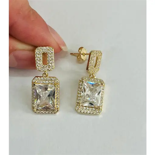 BR RETANGULOS CRAVEJADOS C/ PEDRAS FOLHEADO A OURO 18K
