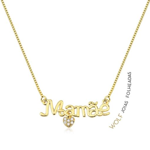 GARG ESC MAMÃE C/ MINI CORAÇÃO CRAVEJADO FOLHEADO A OURO 18K