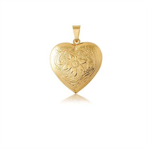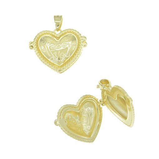 PINGENTE RELICARIO DE CORAÇAO ESCRITO I LOVE YOU FOLHEADO A OURO