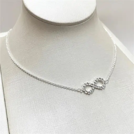 COLAR INFINITO CRAVEJADO FOLHEADO A PRATA
