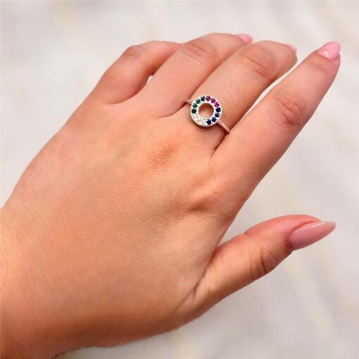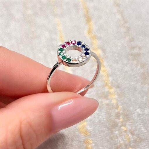 ANEL REDONDO VAZADO BORDA CRAVEJ ZIR COLORIDA PRATA 925