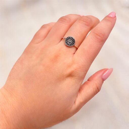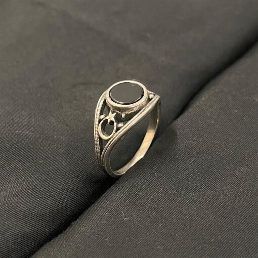 ANEL C/ REDONDO RESINADO PRETO C/ LUA NO MEIO PRATA 925