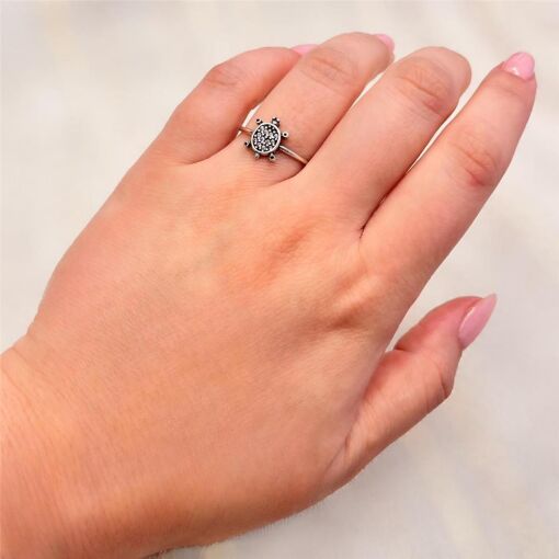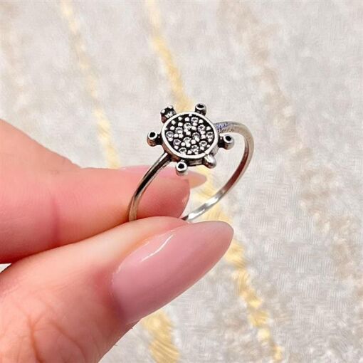 ANEL TARTARUGA C/ ZIRCONIAS E 6 DETALHES NAS LATERAIS PRATA 925