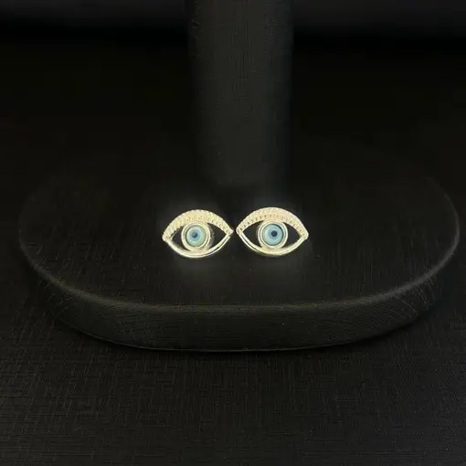 BRINCO OLHO GREGO C/ ZIRCONIAS CRISTAL E AZUL PRATA 925
