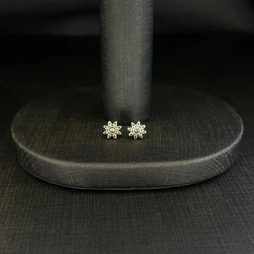 BRINCO ESTRELA C/ 8 PONTAS E PEDRA NO MEIO PRATA 925