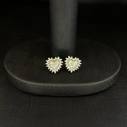 BRINCO CORAÇÃO UMA BORDA CRAVEJ E OUTRA LISA PRATA 925